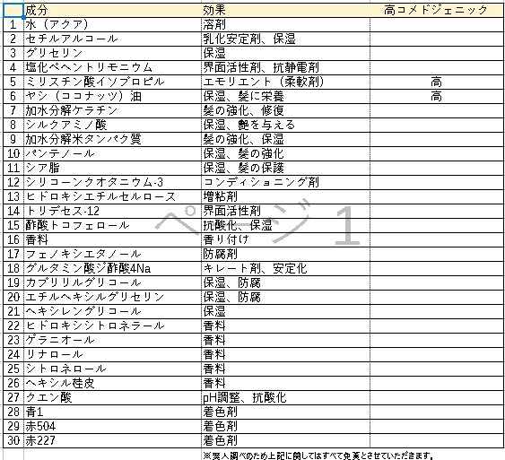 パッケージには有効成分として、ケラチン/シアバター/シルクアミノ酸が記載されております。