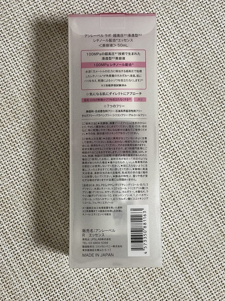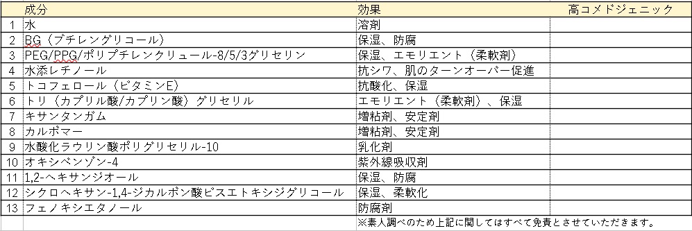 ※レチノールの濃度は明示されていないようでした。